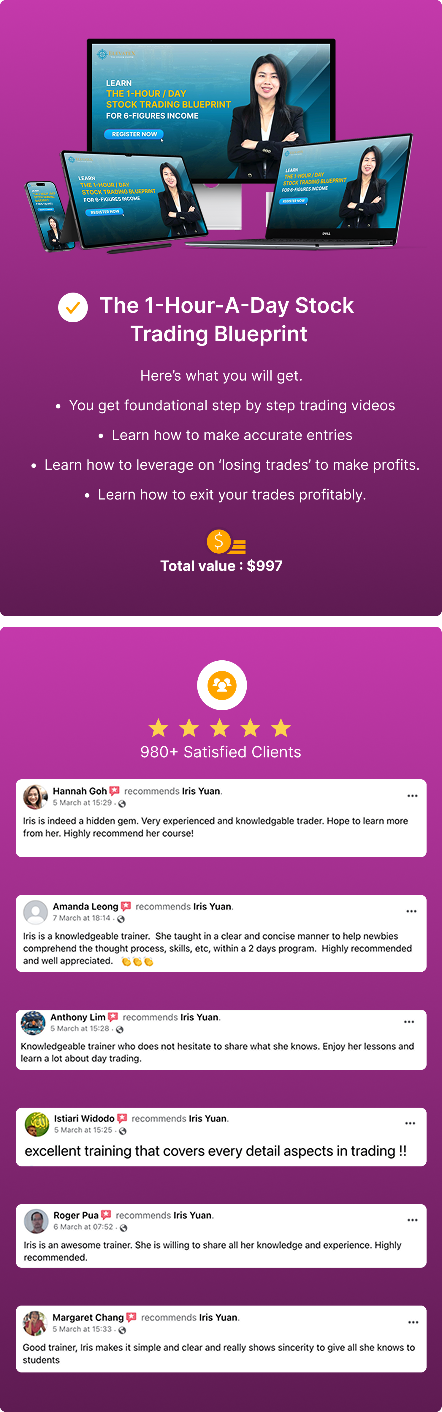 We make no representations, warranties or guarantees whether expressed or implied, made to the content in the program is accurate, complete or up-to-date. Past performance is not indicative nor a guarantee of future returns. We are an education company and hence is not regulated or licensed by MAS as we do not provide investment services.